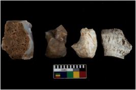 | Description / विवरण | There are n 4 utilized flake cores. Out of them three are made up of Chert and one is made up of Chalcedony. There are multi directional irregular scar pattern on them. One has blunted edge and three have flat base. |