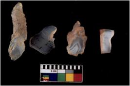 | Description / विवरण | There are n 4 flakes tool; there are large flakes with sides trimmed, Marks of secondary flaking are present on the both the faces. |