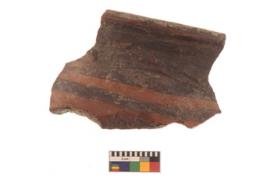 | Description / विवरण | Specimen of black on red ware with black decorative Parallel lines geometric painting. |