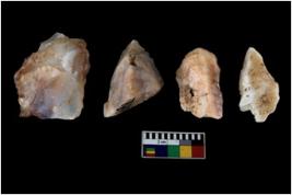 | Description / विवरण | Four utilised worked cores with sharp edges. Flakes have been removed from few sides. |