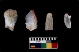 | Description / विवरण | There are n 4 Flake tool; There are multidirectional irregular scar pattern on them. few have blunt edges, Some of them are tapering at one end. |