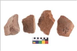 | Description / विवरण | Specimen of flake tool with prominent flaking marks. They are made up of a short flakes with sides trimmed and most of them are rectangular in shape. |