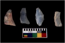 | Description / विवरण | There are n 4 Flake tool; There are multidirectional irregular scar pattern on them. few have blunt edges, Some of them are tapering at one end. |