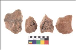 | Description / विवरण | Specimen of flake tool with prominent flaking marks. They are made up of a short flakes with sides trimmed and most of them are rectangular in shape. |