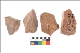 | Description / विवरण | Specimen of flake tool with prominent flaking marks. They are made up of a short flakes with sides trimmed and most of them are rectangular in shape. |
