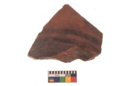 | Description / विवरण | Specimen of black on red ware with black decorative geometric painting. |