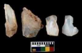 | Description / विवरण | There are n 4 utilized flake cores. There are multi directional irregular scar pattern on them. Three are tapering at one end and one has sharp edge. |