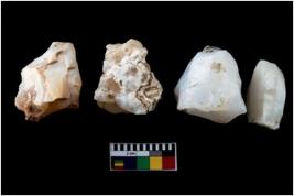 | Description / विवरण | Four utilised worked cores with sharp edges. Flakes have been removed from few sides. |