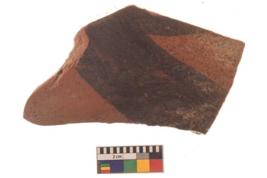 | Description / विवरण | Specimen of black on red ware with black decorative geometric painting. |