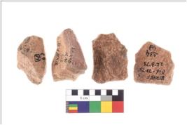 | Description / विवरण | Specimen of flake tool with prominent flaking marks. They are made up of a short flakes with sides trimmed and most of them are rectangular in shape. |