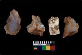 | Description / विवरण | There are n 4 utilized flake cores. Out of them one is made up of Chert and three are made up of Chalcedony. There are multi directional irregular scar pattern on them. One is tapering at one end and three have blunted edges. |