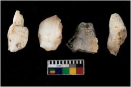 | Description / विवरण | There are n 4 utilized flake cores. There are multi directional irregular scar pattern on them. One has sharp edge and three are tapering at one end. |