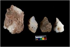 | Description / विवरण | Four utilised worked cores with sharp edges. Flakes have been removed from few sides. |