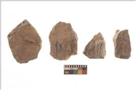 | Description / विवरण | Specimen of a cores with several broad fluted marks and some of them are tapering at one end. |