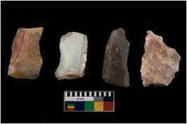 | Description / विवरण | There are n 4 utilized flake cores. There are multi directional irregular scar pattern on them. Two have sharp edges and two are tapering at one end. |