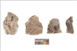 | Description / विवरण | Specimen of a cores with several broad fluted marks and some of them are tapering at one end. |