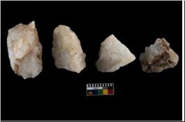 | Description / विवरण | Specimen of cores with visible weathered cortex and few broad fluted marks. Almost all are irregular in shape and size.One is tapering at one end. |