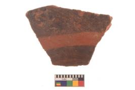| Description / विवरण | Specimen of black on red ware with black decorative geometric painting. |