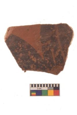 | Description / विवरण | Specimen of black on red ware with black decorative Joint leaf motif geometric painting. |