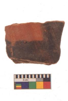 | Description / विवरण | Specimen of black on red ware with black decorative geometric painting. |