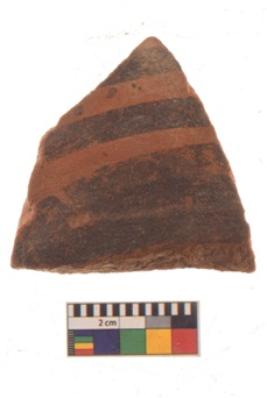 | Description / विवरण | Specimen of black on red ware with black decorative Concentric circles geometric painting. |