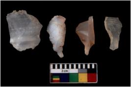 | Description / विवरण | There are n 4 flakes tool; there are flakes tool with prominent flaking marks. It made up of a short flakes with sides trimmed. |