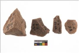 | Description / विवरण | Specimen of flake tool with prominent flaking marks. They are made up of a short flakes with sides trimmed and most of them are rectangular in shape. |