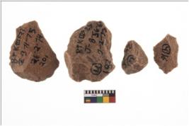 | Description / विवरण | Specimen of flake tool with prominent flaking marks. They are made up of a short flakes with sides trimmed and most of them are rectangular in shape. |