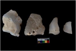 | Description / विवरण | There are n 4 cores; There are multidirectional irregular scar pattern on them. Some of them are tapering at one end. One of them flat thick bottom and pointed functional top,remain is having bluinted edges. |