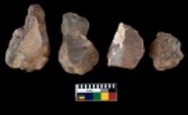 | Description / विवरण | There are n 4 utilized flake cores. There are multi directional irregular scar pattern on them. Three are tapering at one end and one has sharp edge. |