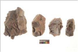 | Description / विवरण | Specimen of a cores with several broad fluted marks and some of them are tapering at one end. |