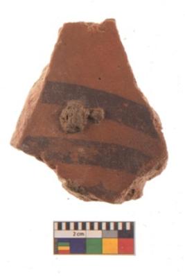 | Description / विवरण | Specimen of black on red ware with black decorative Horizontal parallel lines geometric painting. |