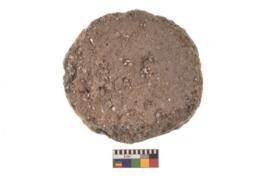 | Description / विवरण | Specimen of ground disc hopscotch made from a red ware. It has jagged edges with sign of chipping. It is rounded in shape. |