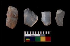 | Description / विवरण | There are n 4 flakes tool; there are flakes tool with prominent flaking marks. It made up of a short flakes with sides trimmed. |
