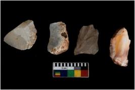| Description / विवरण | There are n 4 utilized flake cores. Out of them two are made up of Chert and two are made up of Chalcedony. There are multi directional irregular scar pattern on them. One is tapering at one end and three have blunted edges. |