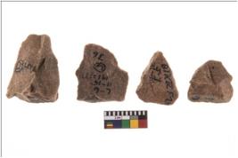 | Description / विवरण | Specimen of flake tool with prominent flaking marks. Some of them are tapering at one end. |