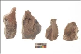 | Description / विवरण | Specimen of a cores with several broad fluted marks and some of them are tapering at one end. |
