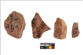 | Description / विवरण | Specimen of flake tools with prominent flaking marks. They are made up of a short flakes with sides trimmed. |