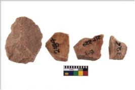 | Description / विवरण | Specimen of flake tool with prominent flaking marks. Some of them are tapering at one end. |