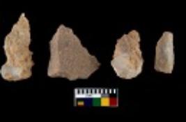 | Description / विवरण | There are n 4 utilized flake cores. There are multi directional irregular scar pattern on them. Two are tapering at one end and two have sharp edges. |