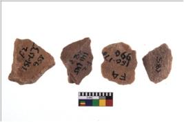 | Description / विवरण | Specimen of flake tools with prominent flaking marks. They are made up of a short flakes with sides trimmed. |