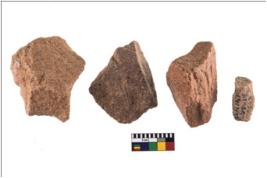 | Description / विवरण | Specimen of flake tool with prominent flaking marks. Some of them are tapering at one end. |