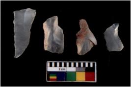 | Description / विवरण | There are n 4 Flake tool; There are multidirectional irregular scar pattern on them. few have blunt edges, Some of them are tapering at one end. |