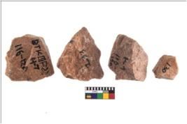 | Description / विवरण | Specimen of flake tools with prominent flaking marks. They are made up of a short flakes with sides trimmed. |