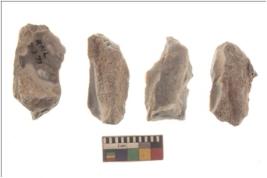 | Description / विवरण | Specimen of a cores with several broad fluted marks and some of them are tapering at one end. |