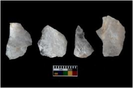 | Description / विवरण | There are n 4 cores; There are multidirectional irregular scar pattern on them. Some of them are tapering at one end. One of them flat thick bottom and pointed functional top. |