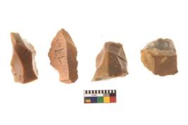| Description / विवरण | There are n 4 cores; There are multidirectional irregular scar pattern on them. Some of them are tapering at one end. One of them flat thick bottom and pointed functional top. |