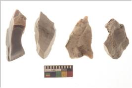 | Description / विवरण | There are n 4 flakes tool; there are multidirectional irregular scar pattern on them; made of short flakes and all four have tapering edges. |