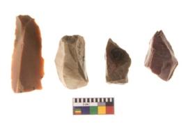 | Description / विवरण | Specimen of a cores with several broad fluted marks. The reverse bulb and platform can be seen. The flake scars are seen on all sides. |
