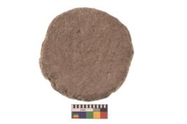 | Description / विवरण | Specimen of ground disc hopscotch made from a red ware. It has jagged edges with sign of chipping. It is rounded in shape. |
